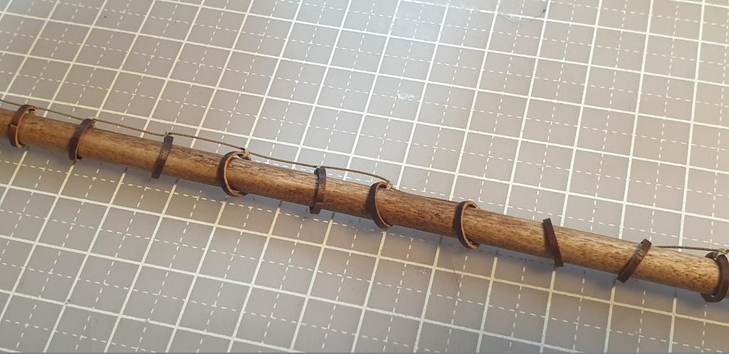 Ci sarebbe stato da aggiungere due golfari appena a poppavia di quelli ai quali sono incocciati i bozzelli (avrei dovuto farlo prima di posizionare i cannoni, adesso è problematico arrivarci), costruire un paranco diverso ecc.