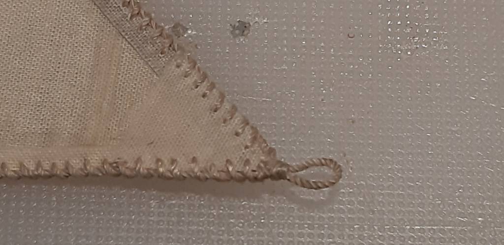 Ho completato anche questa vela, tagliata e rinforzati i bordi e gli angoli sia con lo stesso tessuto che con la ralinga cucita.