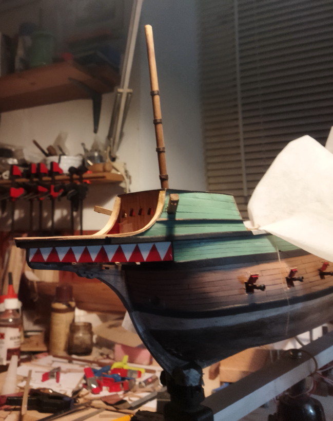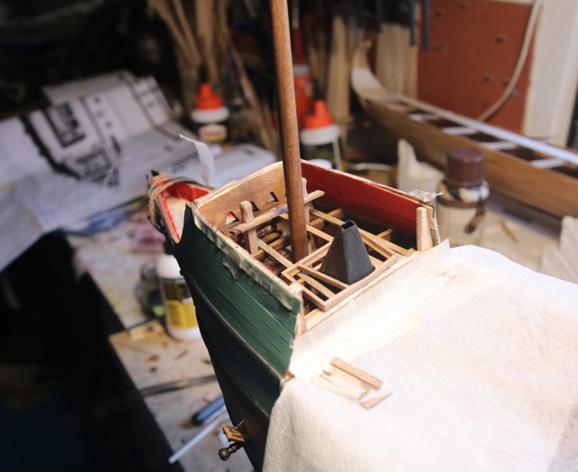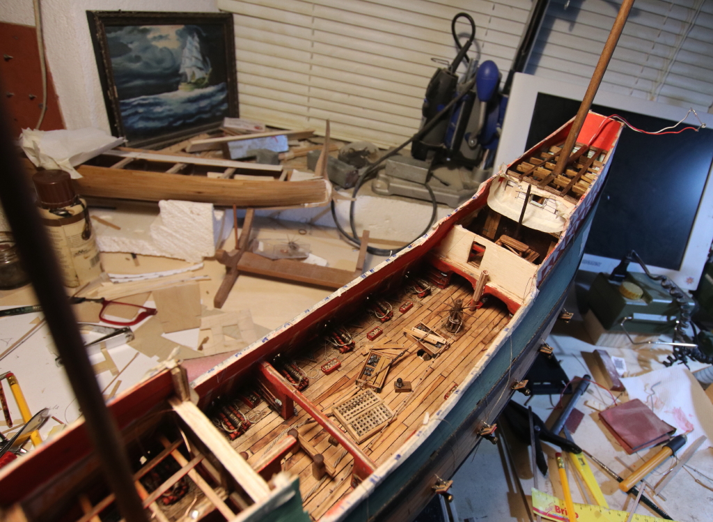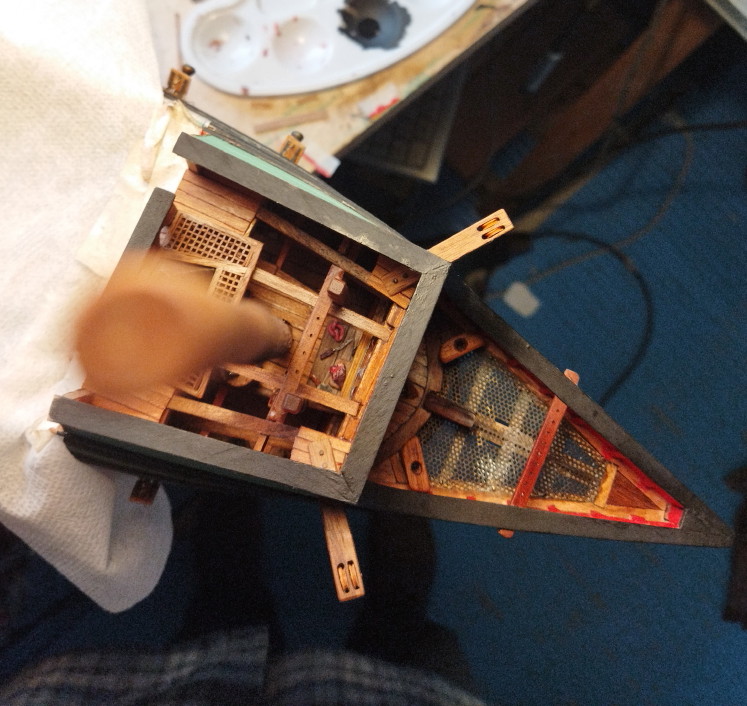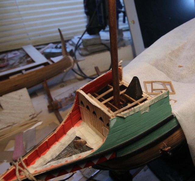 Ci sono altri particolari che vanno realizzati sul castello, uno dei piu' importanti sono le "gru di capone", fondamentali per il recupero delle pesanti ancore.