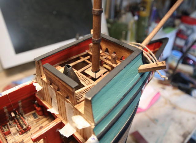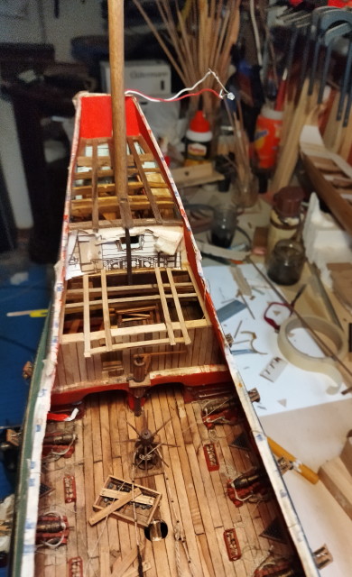 Il problema, Cervotto, è che al di sotto c'è la botte con lanterna e la cucina, anche sulla monografia la bitta della drizza esce dal paiolato, sarà dura ma con molta pazienza dovrei farcela, almeno ci provo...