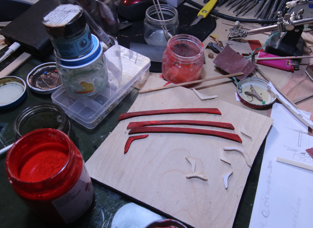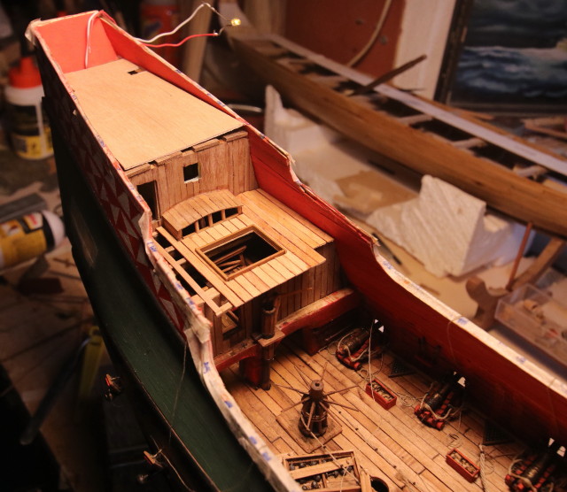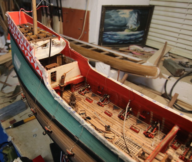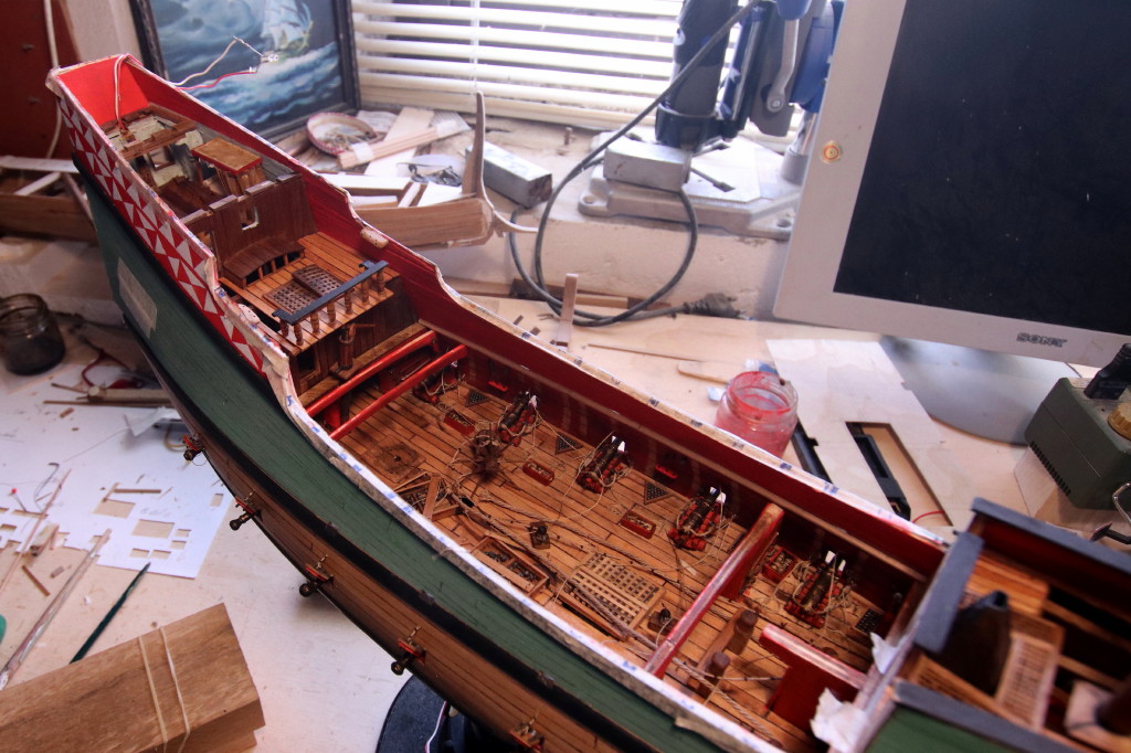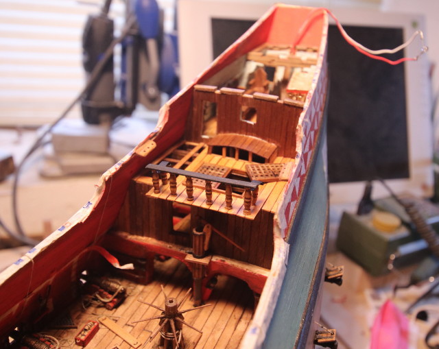 Manca l'ultimo ponte, quello di comando, inizio con lavori di posa della struttura sulla quale c'è il tavolato del ponte, per cui inizio con la posa del trincarino che realizzo in ciliegio