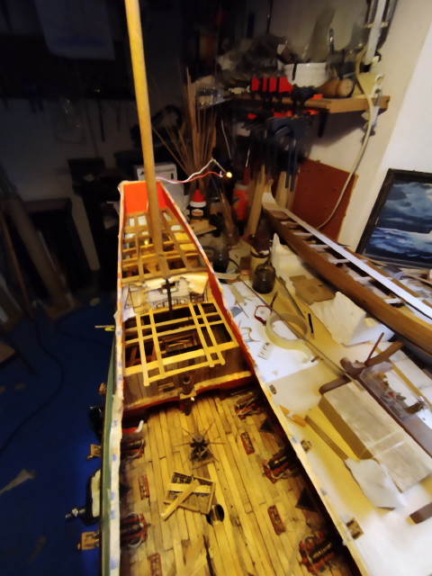 Avevo iniziato a fare il ponte dove si vede la parte superiore del casotto del timoniere, allora appena terminata la parte strutturale dove si appoggiano le tavole del ponte ho fatto la struttura del casotto,