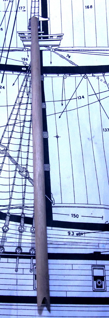 Sicuramente il particolare piu' grande è l'abero maestro, nello specifico il "fuso maggiore", accanto a questo l bittone per la drizza del pennone della vela di gabbia, per realizzare il fuso sono partito con quadrello di 10 mm, questa volta non mi sono dilungato nella realizzazione degli alberi "composti" come ho fatto in altri modelli, anche perchè in molti casi non si nota la differenza, realizzare in autocostruzione gli alberi vuol dire perderci 2/3 ore, riporto qualche foto delle fasi,