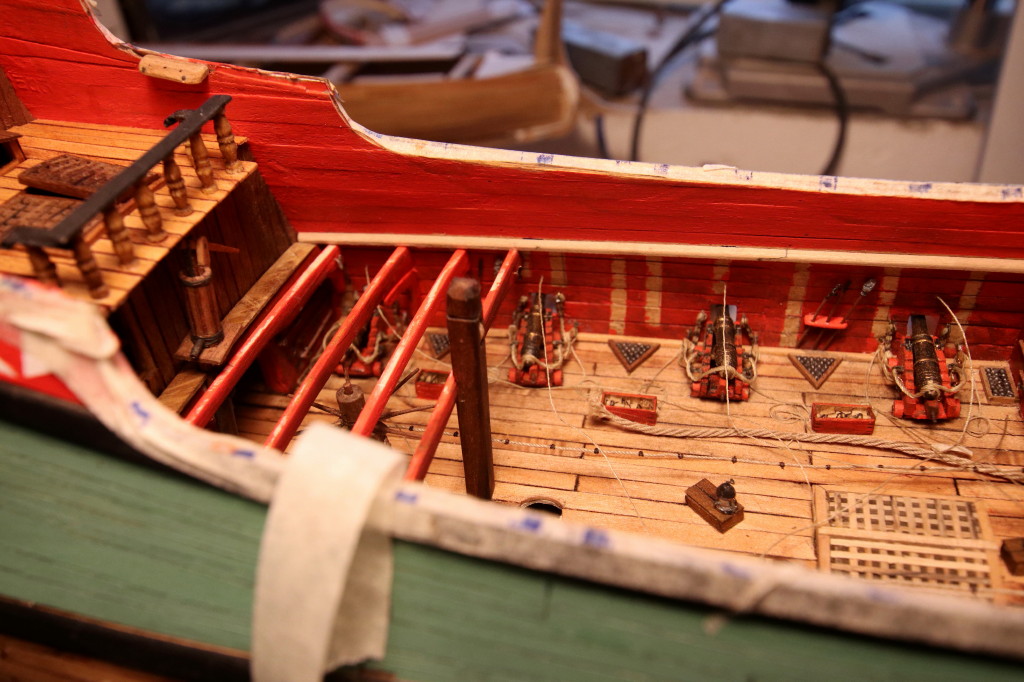 mi servirà anche per l'allineamento dei bagli che sosterro' con le mensole, i bagli posizionati sopra ai cannoni, avranno la galloccia sulla quale viene stroppato il cavo d'apertura dei mantelletti