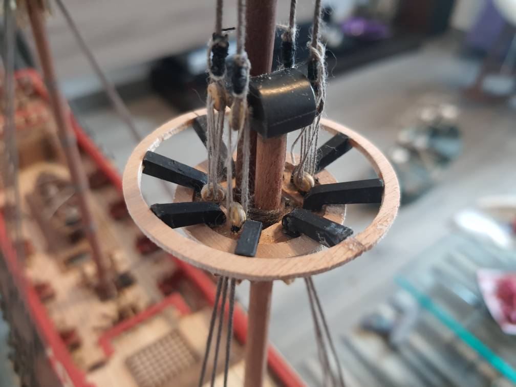 La posizione delle bigotte dell' albero di gabbia è così da istruzioni? Perché dovevano essere al punto blù sulla coffa, poi con le rigge che si collegavano alle sartie inferiori.