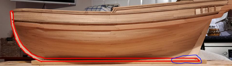 La prossima volta penso di inserirla subito nello "scheletro" al posto giusto, sostituendo la parte corrispondente della "chiglia" in compensato, prima della posa del primo fasciame. Non so se è una bella pensata, però farlo a fasciame terminato non mi è piaciuto per nulla.