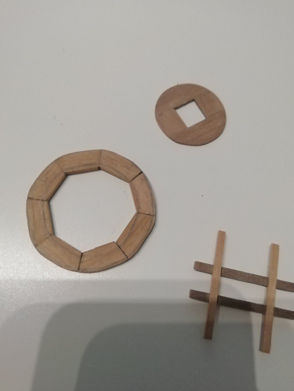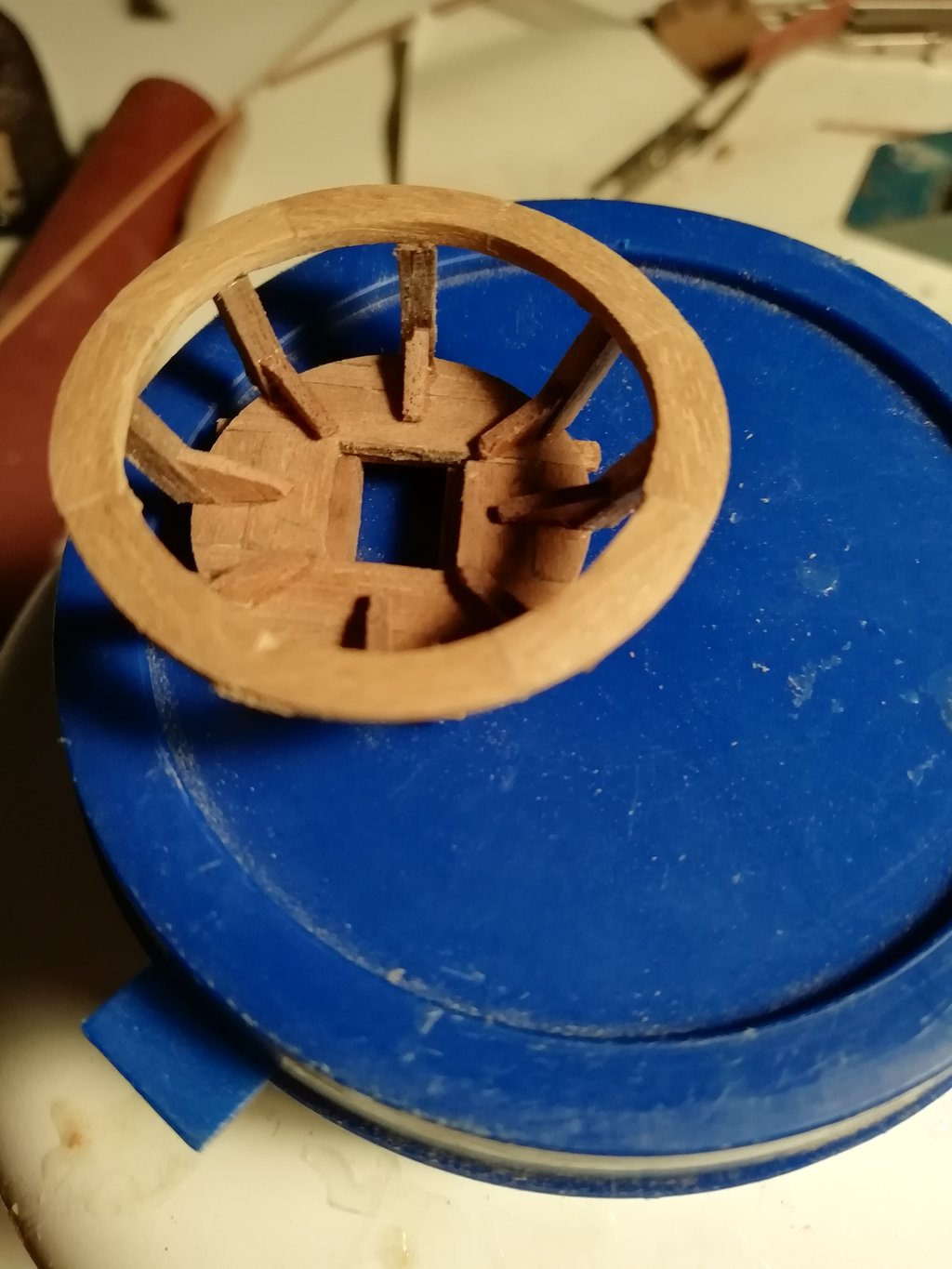 Tornando alla costruzione del modello, mi sono distratto un po' cimentandomi nella costruzione delle coffe, i piani prevedevano delle coffe ricavate del pieno, ma: 1 non ho un tornio, 2 non mi piacevano, 3 mi sono ispirato a quelle della ricostruzione, quindi vi illustro con queste foto come ho proceduto.