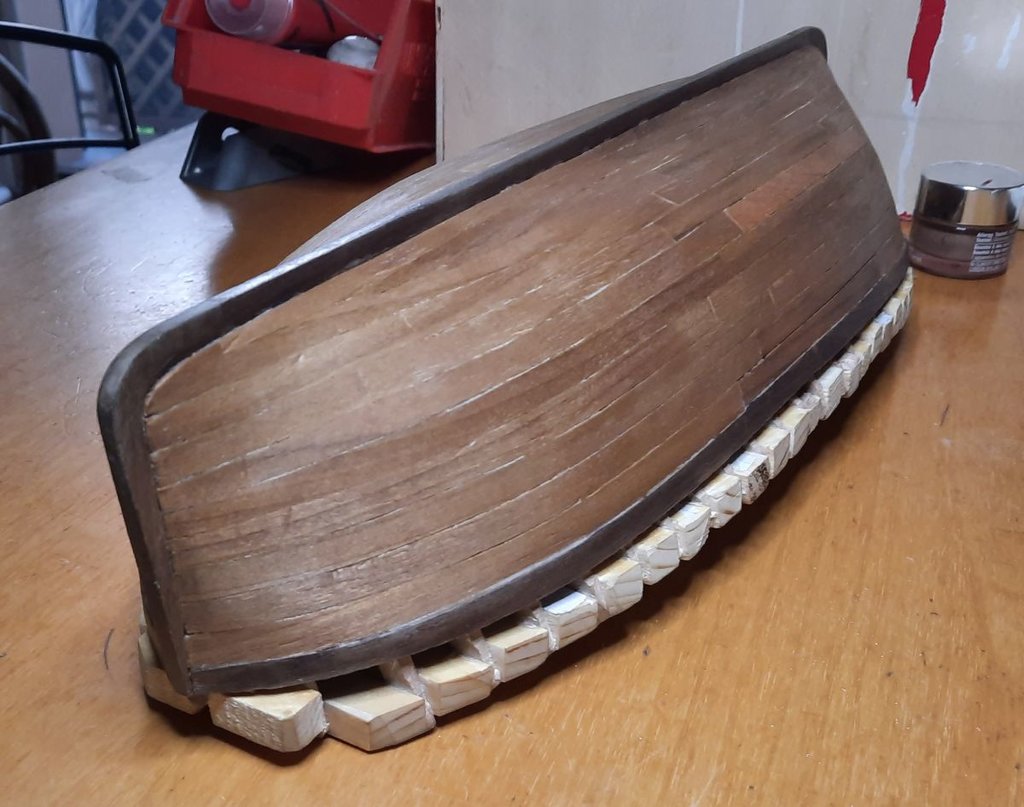 Il fasciame è terminato e carteggiato, il gozzo comincia a prendere forma...