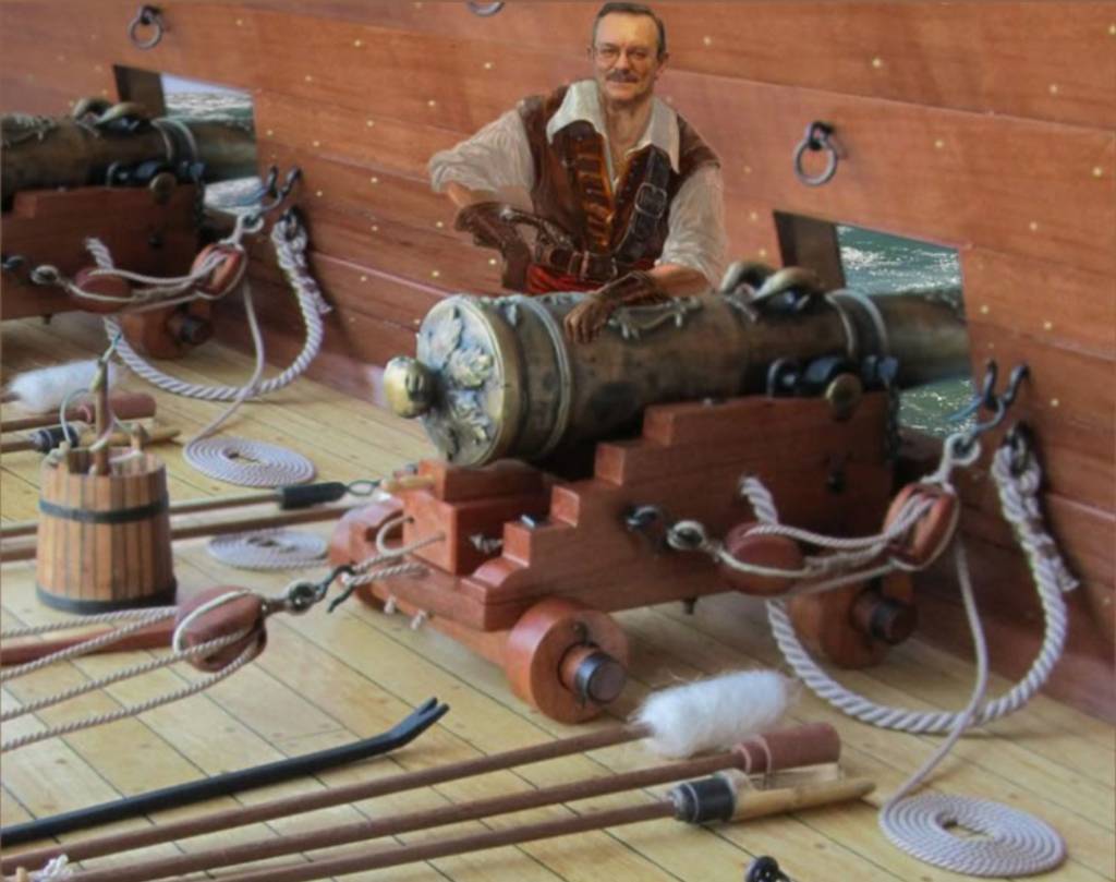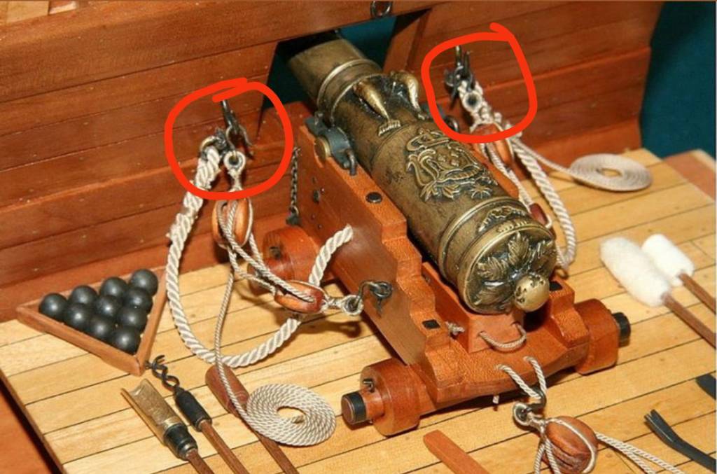 Buonasera modellisti, giacchè si sta parlando di sabordi, cornici portelli e quant'altro, vi chiedo cosa sono e a cosa servono quei "pezzetti di metallo" posti ai lati dei sabordi. Allego immagine che forse è più esplicativa che non le mie parole.