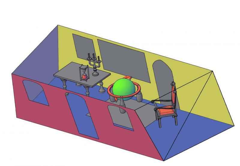 buondì ... allora vediamo un pò, visto che il materiale in rete è poco a proposito di cabine di antichi vascelli, me la sono ricostruita da me, con tutti arredi inventati ispirati a quache immagine qua e la, e con l'ausilio di autocad 2008 e le potenzialità rendering applicate al 3d ecco una sgrossatura della cabina in questione ... è stata una buona occasione per rispolverare vecchie conoscenze software che coltivo raramente, e poi mi sono divertito un mondo a ricrearla in virtuale, sepur coi miei limiti e pecche, autocad inoltre è molto macchinoso sulla modellazione e sull'applicazione delle texture dei materiali, e il mappaggio molte volte va per i fatti suoi