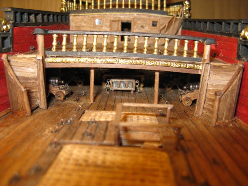 Terminata l'ambientazione interna del castello di prua, con il solito led sul baglio più a prora, mancano alcune manovre dei cannoni e le colonne per sostenere il ponte.