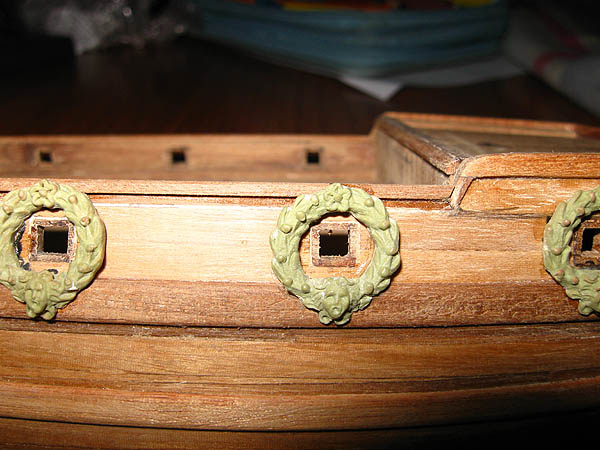 attualmente ho dovuto interrompere il lavoro dei decori, prchè mi sono accorto di una svergolatura dello scaffo, sdradicato il ponte di poppa, ho ricostruito praticamente tutto il ponte, i risultati sono stati ottimi...