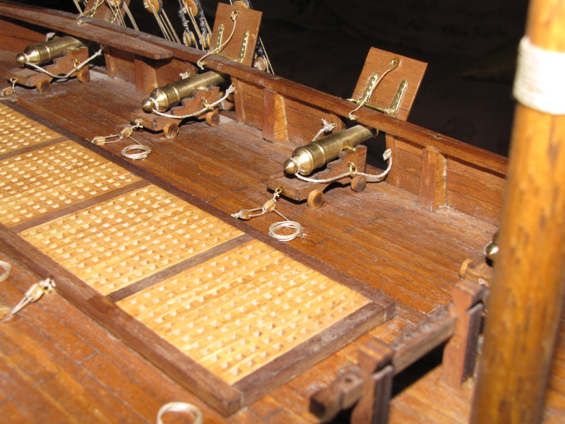 Stavo pensando, per arricchire il ponte, visto che è in scala piuttosto grande, perchè non completi gli affusti con tutte le corde e i bozzelli di rimando, secondo me miglioreresti molto l'effetto. Se guardi su qualsiasi manuale è spiegato molto bene come funzionano. Comunque comlimenti, stai lavorando molto bene!
