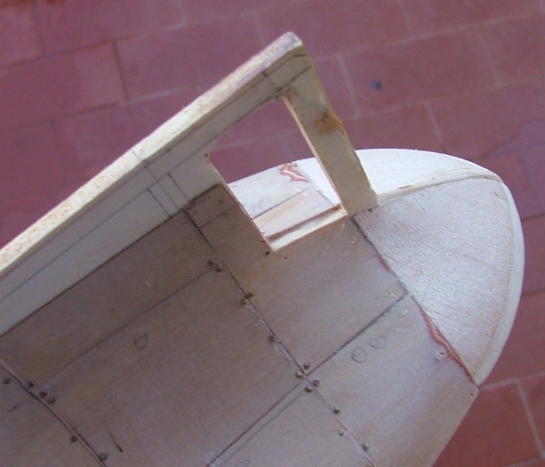 Per le parti a poppa e prua, invece, laddove la curvatura è pià decisa e le linee sono più affinate (a prua) o tandeggianti (a poppa) ho usato dei riempitori fatti di blocchetti di balsa, poi tagliati, scartavetrati e piallati fino ad ottenere il profilo necessario.