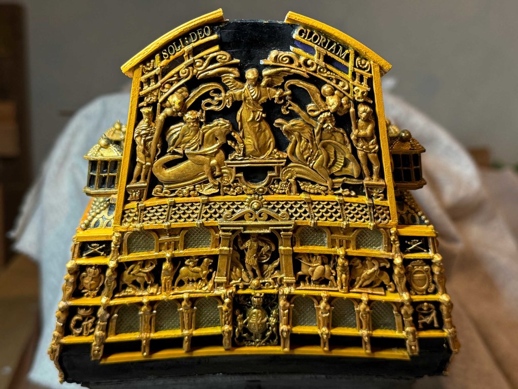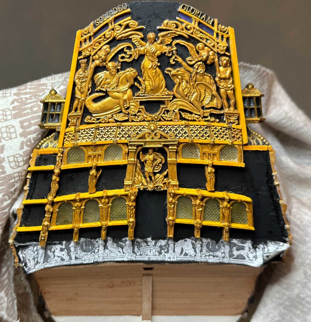 Sono finalmente riuscito a completare (quasi) la zona superiore della poppa compreso il coronamento, dove ho lasciato lo spazio in cui verrà alloggiata la cupola. Ora vedo se procedere con la costruzione di quest'ultima oppure scendere ancora e completare tutta la parte inferiore.