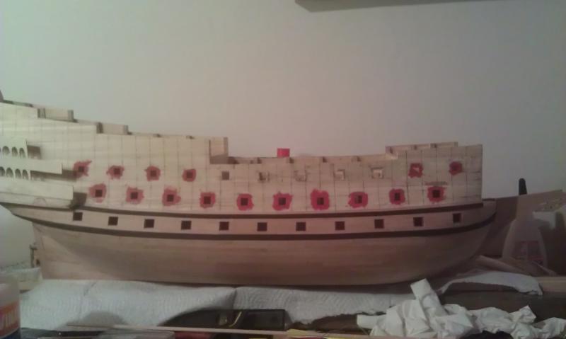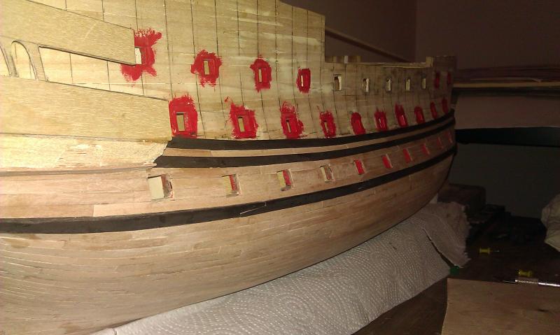 Dall'ultimo aggiornamento ho completato la zona dei sabordi del primo ponte di batteria sull'altro lato (quello dove i sabordi rimarranno chiusi)... Non dico cosa ho dovuto ricontrollare e modificare leggermente in corso d'opera perche' sarei ripetitivo  ormai li sogno di notte. Pero' adesso sono sicuro che il primo ponte di batteria e' preciso e simmetrico.