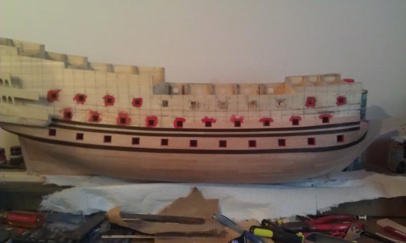 Mi manca il secondo miniincintone modanato e poi rifare lo stesso procedimento anche sull'altro lato (quello dove i sabordi rimarranno poi aperti).