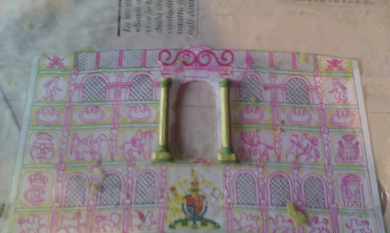 Nel frattempo questa mattina, ho iniziato a modellare le due colonnine che stanno ai lati della nicchia con San Giorgio, Utilizzando per il corpo centrale solo del milliput, mentre le decorazioni piu' minute (quelle in verde scuro) sono fatte in materia verde (che permette una maggiora lavorabilita' nel particolare).