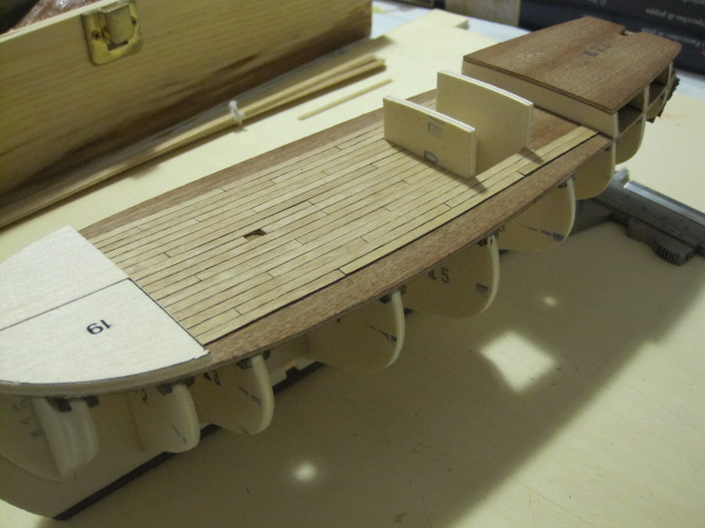 Il capodibanda e' quel listello in faggio evaporato che va messo piegato di piatto partendo dalla poppa, lungo tutta la murata fino a prua (praticamente quello piatto sul bordo), ma prima dovrai fare il primo e il secondo fasciame.