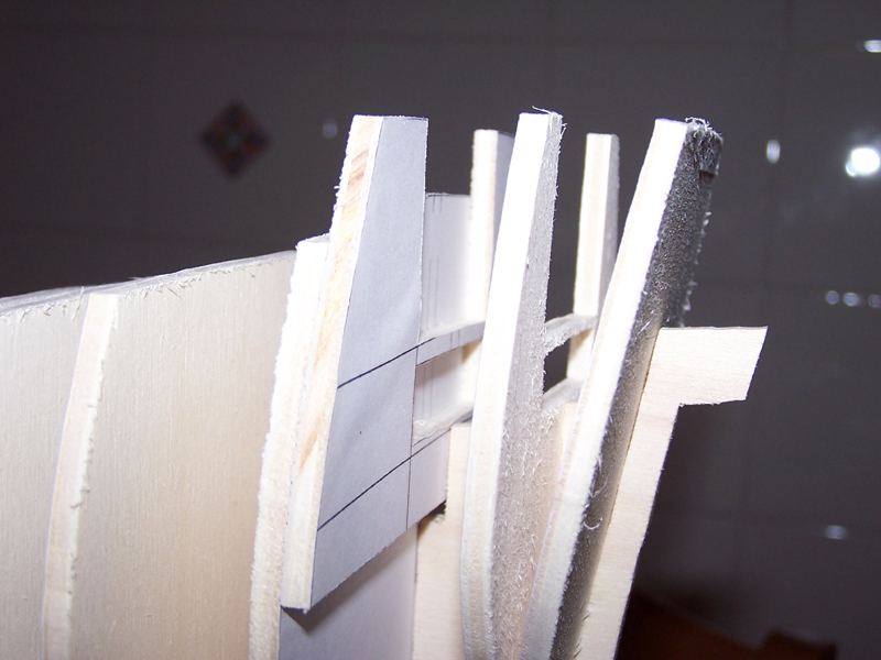 Lo spessore di falsa chiglia e ordinate è 4 mm, perfetto per il compensato di betulla (praticamente ci ho costruito tutta l'ossatura del Bellona), molto meno perfetto per il compensato in pioppo...