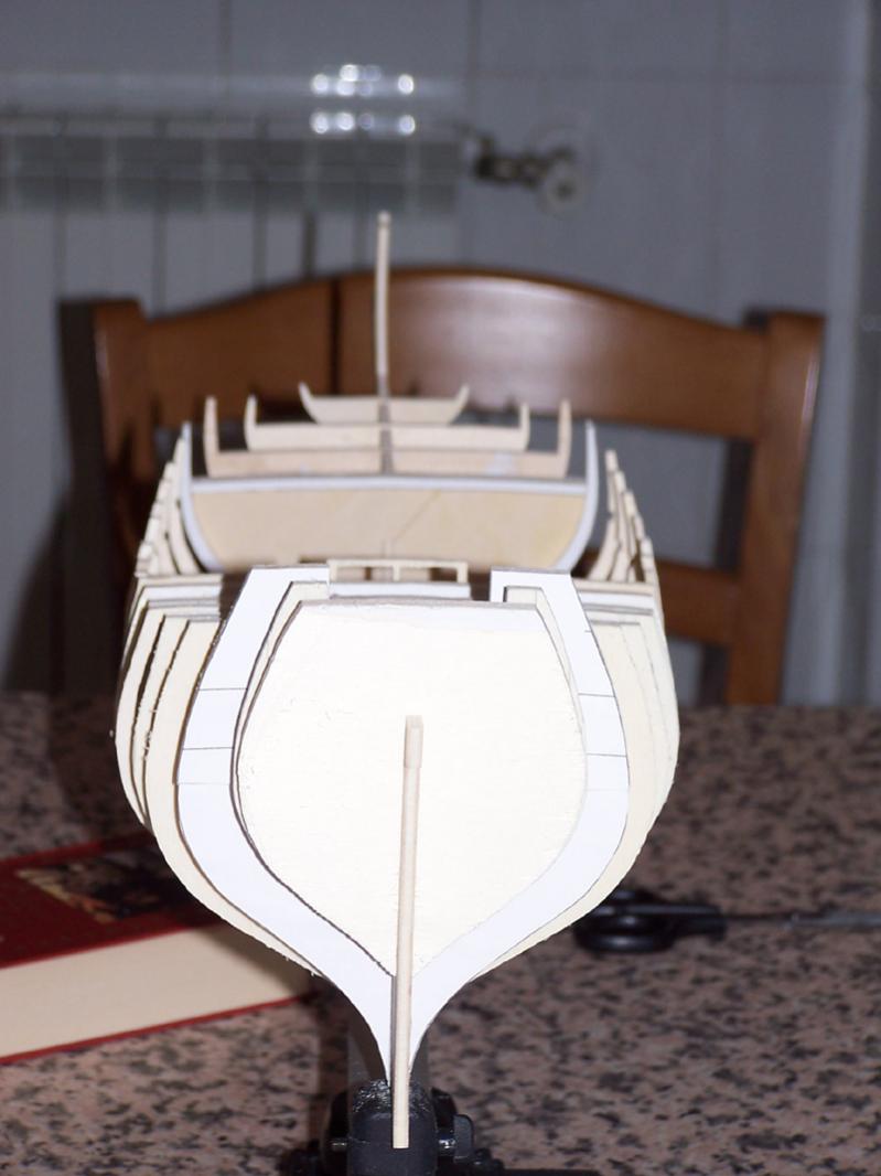 Il fasciame della Saettia sarà di 2 mm di spessore (5 nella zona stiva)
