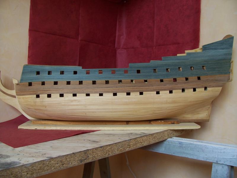Una volta terminato il primo fasciame (...),piazzi i falsi ponti di batteria,e partendo dal ponte di coperta (non ancora posizionato definitivamente) segni i sabordi (alti quindi).