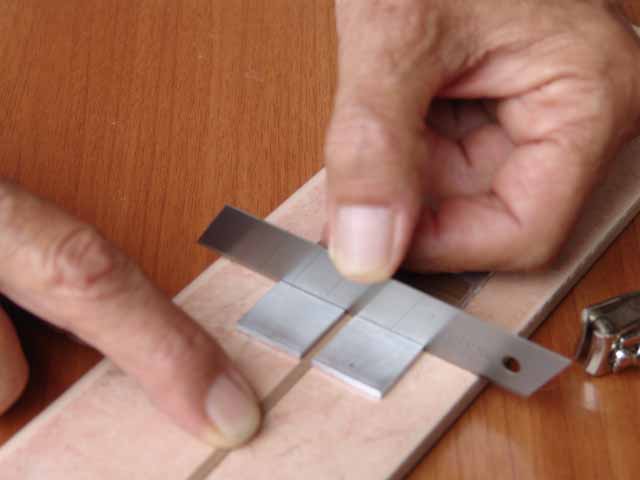 Sono parti squadrate d'alluminio accostate per lo spessore del listello e della lama + un angolare sempre in alluminio a cui appoggiare la lama per un taglio sempre perpendicolare e uguale, su mattonella di ceramica; una volta inserito un listello basta la pressione del pollice per tagliarlo.