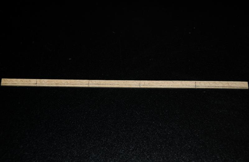 Nelle foto che seguono si possono vedere i primi sei listelli, a partire dal ponte di bompresso, incollati allo scafo.