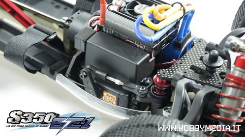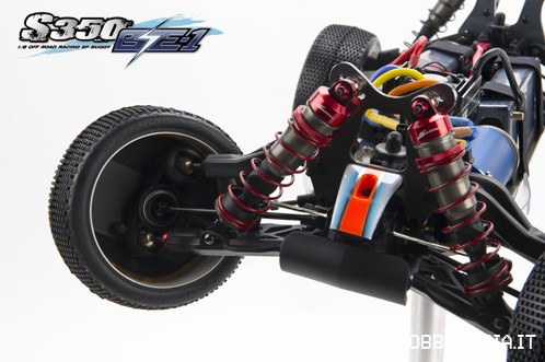 Il sistema di sterzo è dotato di Pivot Ball per migliorare il controllo. Il disegno e la distribuzione dei pesi sono stati studiati per esaltare le doti di bilanciamento e garantire un facile setup in tutte le situazioni. Il setup base è semplice ed è la base di partenza ideale per tutti i piloti. Per completare il kit della S350 BE1 andranno acquistati separatamente servo, motore, regolatore, ricevente e pacchi batterie.