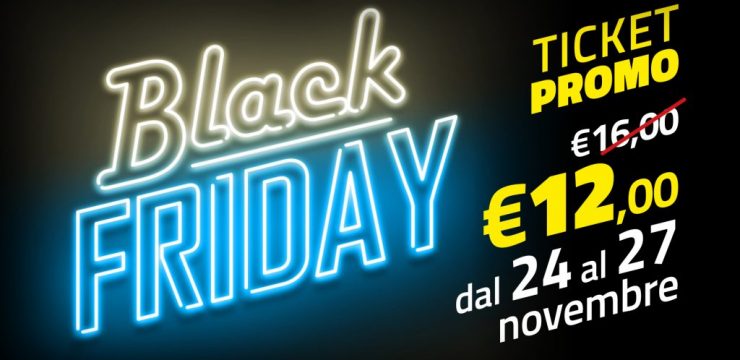 Black Friday, ovvero a partire da venerdì 24 a lunedì 27 novembre compreso, verrà aperta la biglietteria on line con una speciale promozione dell’acquisto del biglietto intero (12 euro anziché 16 euro).