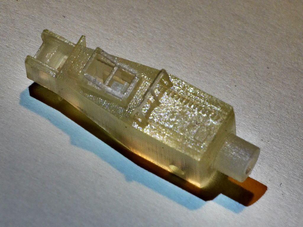 Le gru, invece le ha stampati Shapeways con prezzo contenuto e materijale acrilico indurito con raggi uv. Penso che per i pezzo in 350 usero loro, oltretuttp Hano una bella risoluzione , sporgenze e rienztranze 0,1 mm guoco tra parti mobilni 0,05 mm