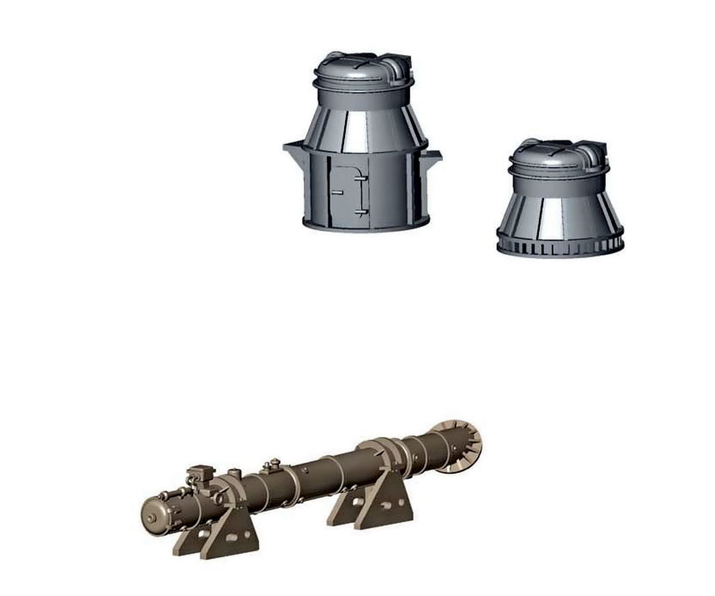 In anteprima cioè "bozzi" delle torrette per cannoni binati da 23 mm e dell tubo lancia siluri