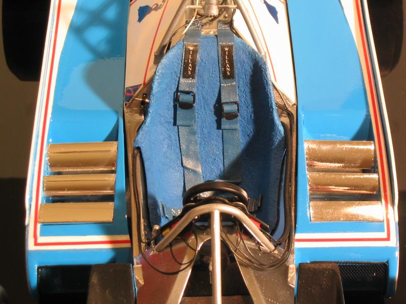 Il bianco della carrozzeria è stato verniciato, perchè le sue decals erano troppo ingiallite e spesse. Le cinture le ho riprodotte con del nastro telato e i puntini delle cuciture sono riprodotti a mano libera!