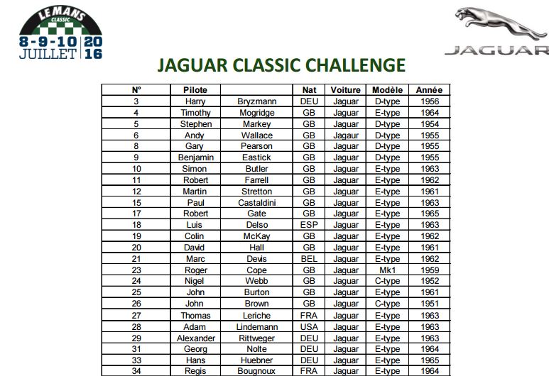 con la conferenza stampa di giovedì prossimo, alla presenza del Presidente di ACO , Pierre Fillon e di Philip Peter, organizzatore di Le Mans Classic, si apre il week end più intrigante per gli appassionati di auto storiche. Di seguito l'elenco dei partecipanti suddivisi per categoria, le vetture Gruppo C e le Jaguar Classic , che per la prima volta ingaggeranno un trofeo a loro destinato.