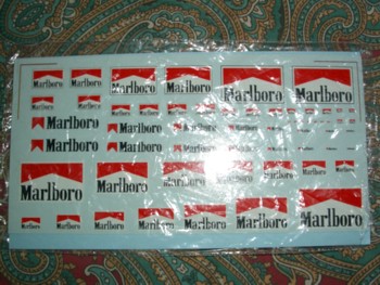 ecco le decals marlboro, si vede solo il primo foglio sotto ci sono "mille" altre scritte Marlboro