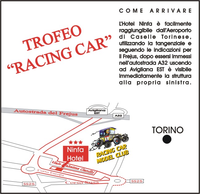 Comunico le date della manifestazione del "Trofeo Racing Car 2010" che avrà luogo presso la sala dell'Hotel Ninfa di Avigliana in Viale Gandhi n°9.