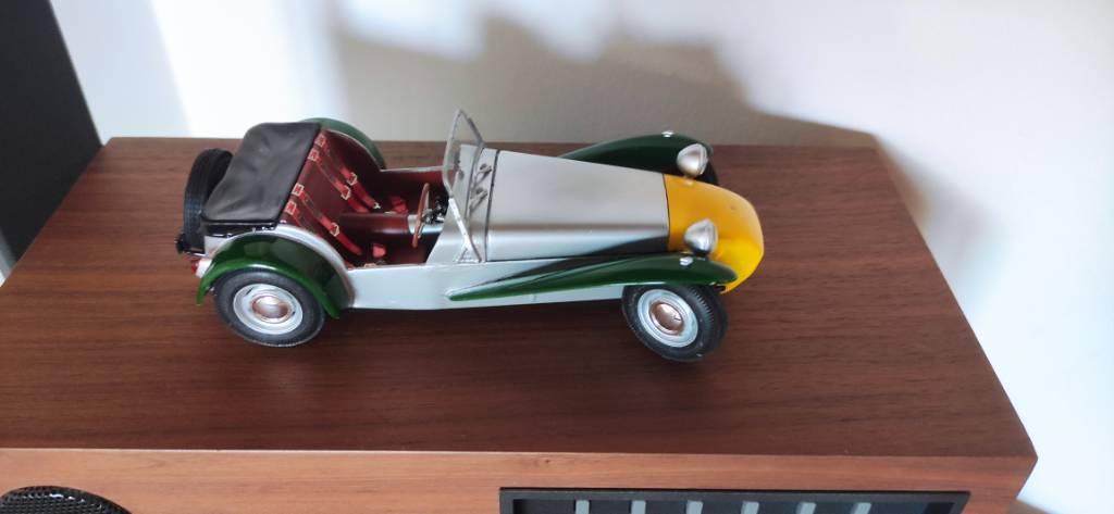 Prima ho realizzato un modello di test per mettere alla prova mie capacità e tecniche (una Lotus super 7 serie II che compare anche sullo sfondo in qualche foto, realizzata fra gennaio e febbraio).