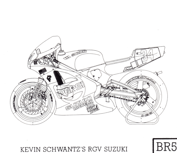 Il kit, seppur abbia come soggetto una moto splendida, non è all'altezza della situazione, ci sono diversi errori (anche grossolani) e una serie di pezzi mixati un po da tutte le versioni della RGV del 1988. Ricordo che quell'anno la Suzuki iniziò con la stagione con la XR73 (facilmente riconoscibile per gli scarichi inferiori sui due lati della moto) e la concluse con la XR74 late version (doppio scarico basso sul lato dx ma diverse altre modifiche non visibili a carena montata). Teoricamente questo kit vorrebbe riprodurre la XR74, ma in realtà ci si avvicina appena. Passiamo all'analisi degli errori più grossi: il forcellone posteriore è completamente cannato nella capriata di irrigidimento lato dx, la piastra bucherellata per la regolazione delle pedane non l'ho trovata in nessuna foto (né in rete, né sul racers dedicato), le fiancate del codone sono errate nella zona telaio (come da foto), alcune saldature del telaio non sono riprodotte fedelmente (ma qui ho rimediato ->foto)... per adesso è tutto, di certo andando avanti salterà fuori qualcos'altro.... ah dimenticavo: le decals (come già discusso) hanno quel celestino Pepsi pallido pallido... mah, vedremo che esce fuori...