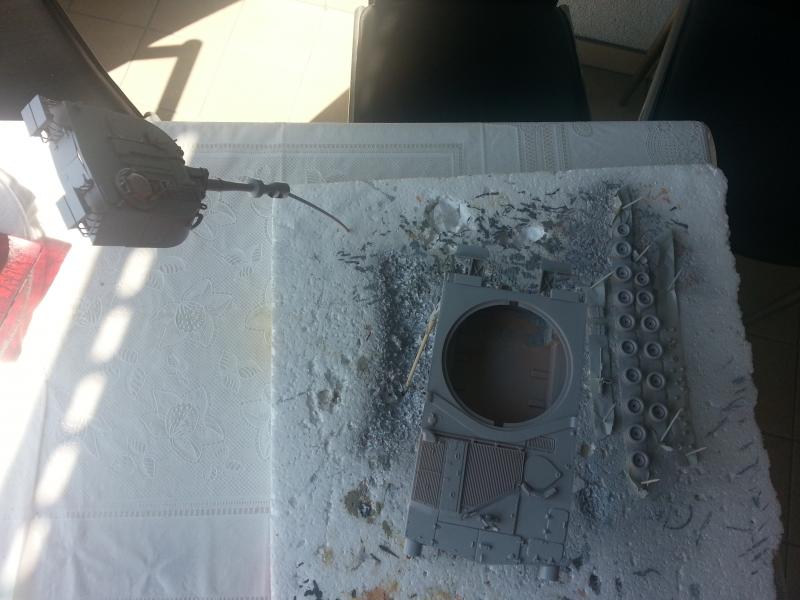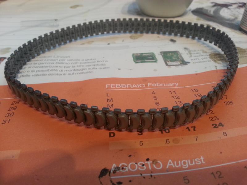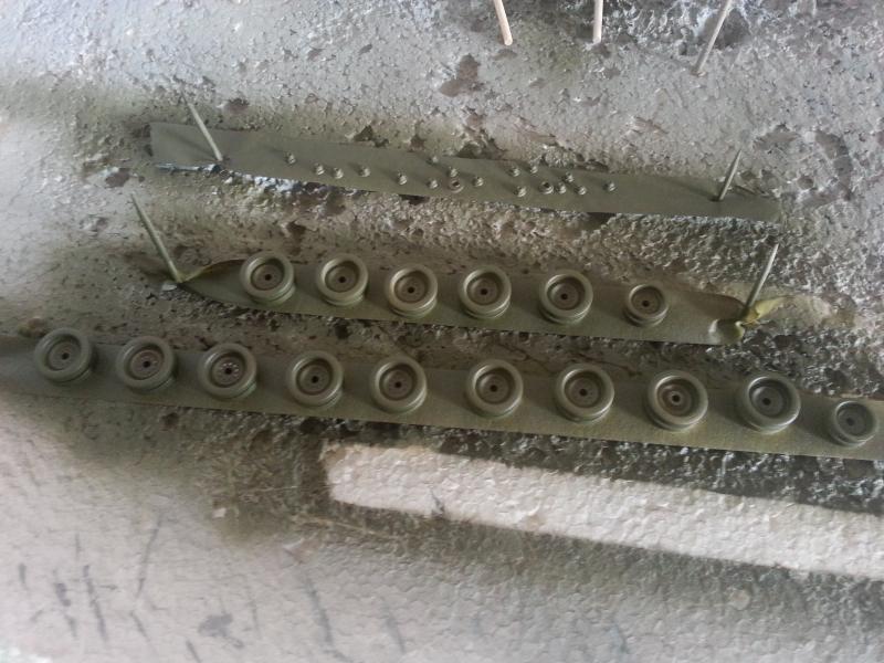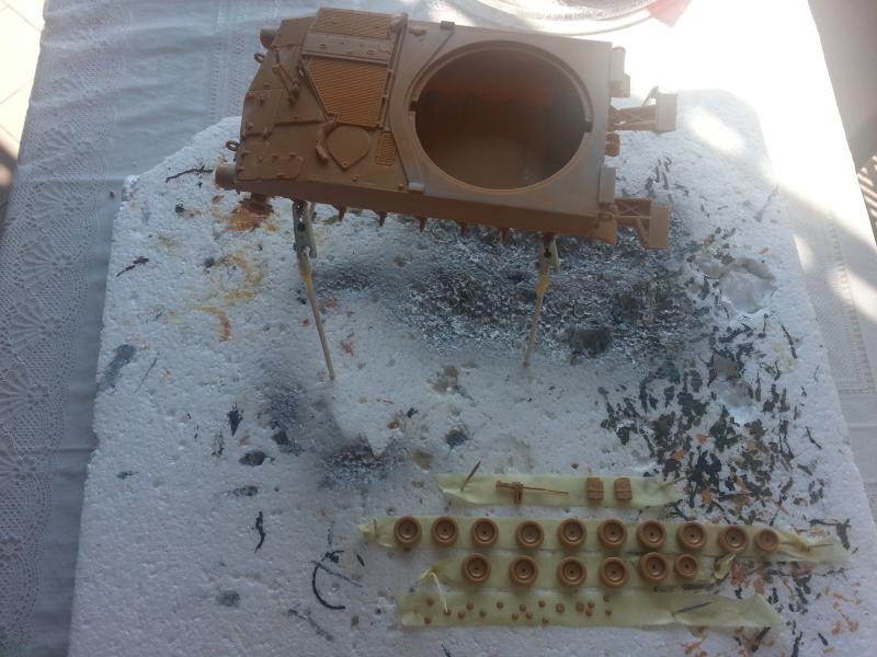 Anche se fuori ci sono piu di 40° C   cerco di portare a termine il mio lavoro, come si puo vedere ho inziato la prima mano di pittura del colore finale (olive drab), e la pittura dei cingoli (xf-1 e x-10)