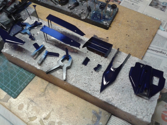 Primer nero 1500 gunze (veramente ottimo) sulle parti in metallo e TS 13 sulla carrozzeria.