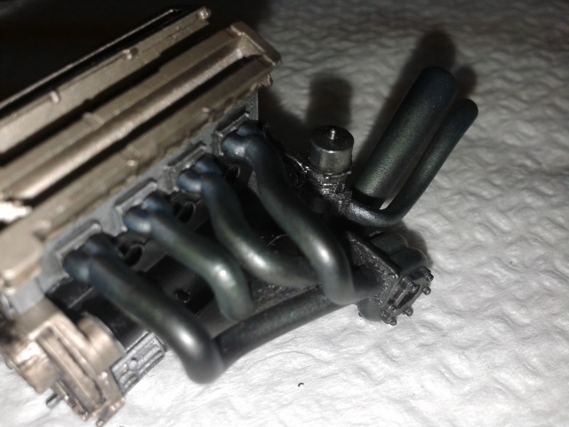 Turbocompressore e parte del motore. Per gli scarichi alclad burnt iron e polverine tamiya.