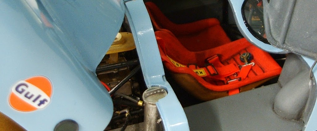 Per i sedili e il cruscotto ho simulato il "pannetto" coprendo con abbondanti mani di primer, poi con un pennello leggermente bagnato di diluente nitro ho creato la texture. Importante poi è verniciare con colore opacissimo, poco diluito e da lontano per accentuare l'effetto.