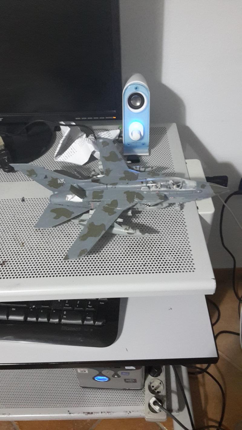 non ho mai visto una mimetica di quel tipo su un Tornado di nessuna Nazione che lo utilizza, le decals messe sono quelle inglesi per la versione desertica, la bocca di squalo andrebbe sul muso e non sulla presa d'aria, ma penso sia di fantasia