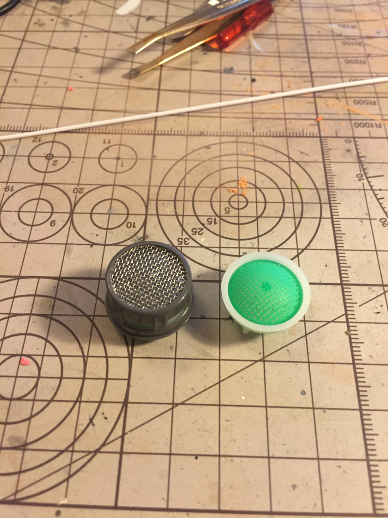 Ho usato una delle retine (perché all'interno ce ne sono un bel po' stratificate e sovrapposte) di un regolatore di flusso da rubinetto.