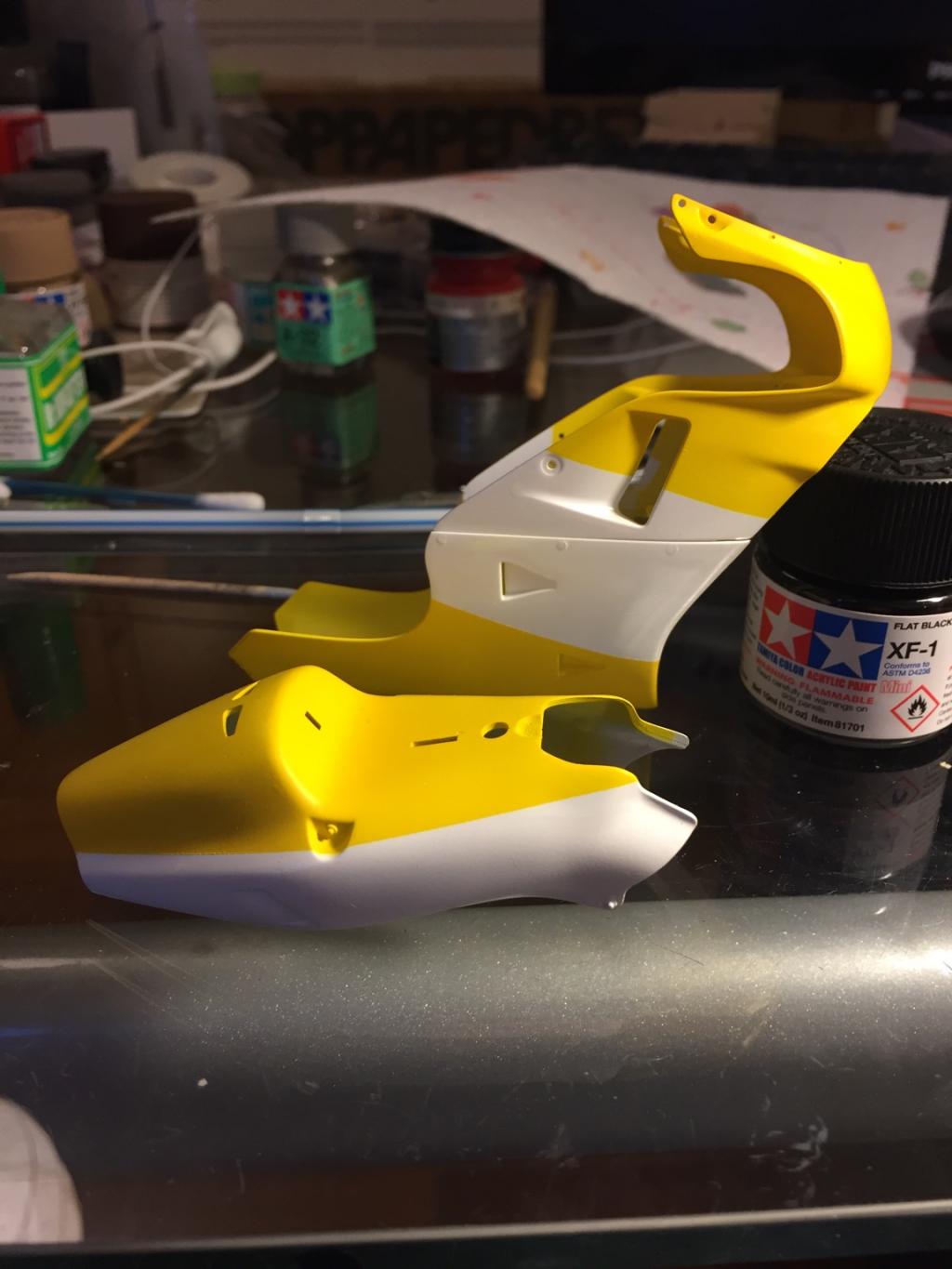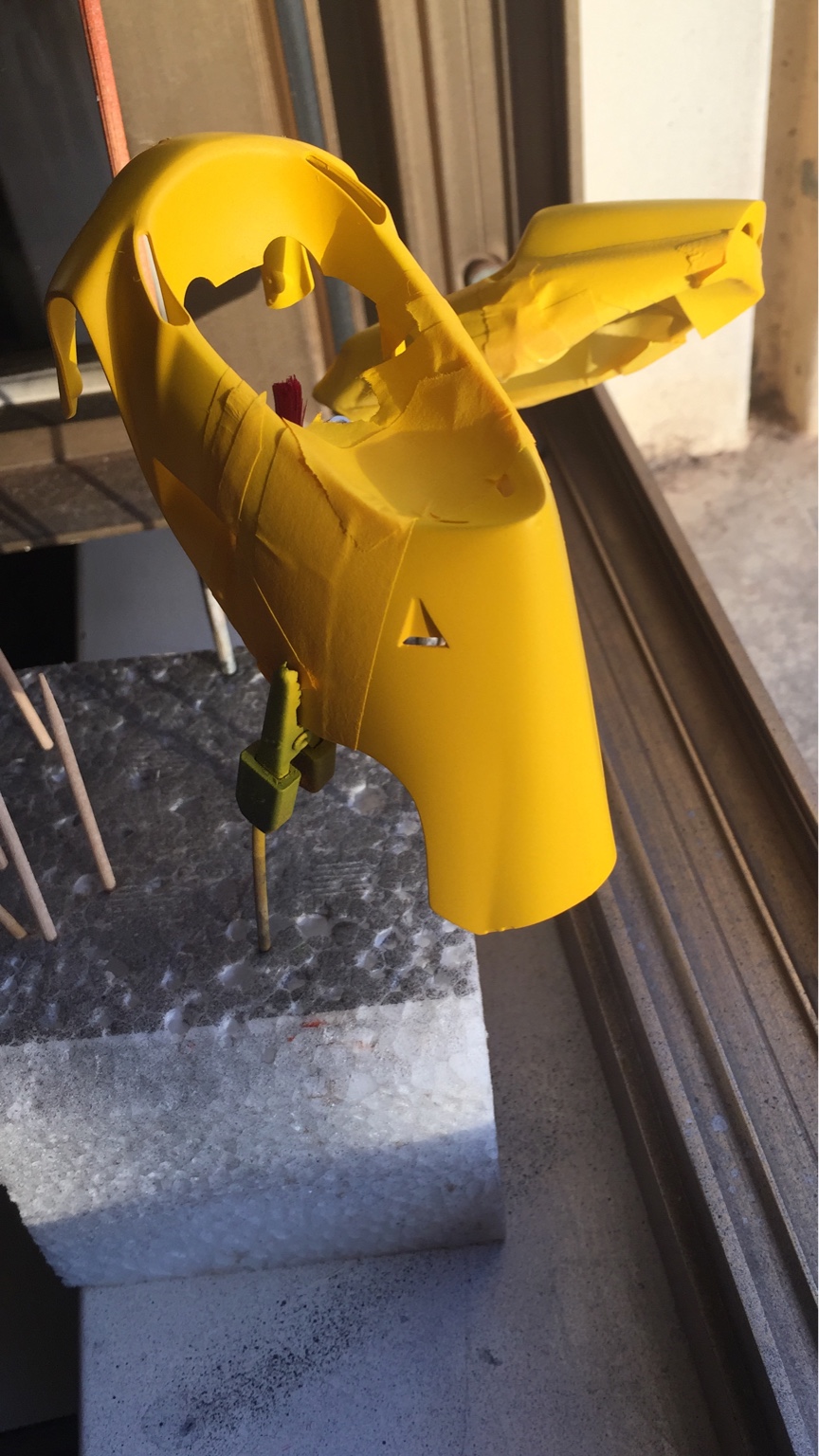Ho dato la prima mano di giallo Zero Paints, veramente bello, molto coprente e facilmente carteggiabile. Devo ridurre lo scalino tra il bianco e il giallo, ma al momento mi ritengo soddisfatto.