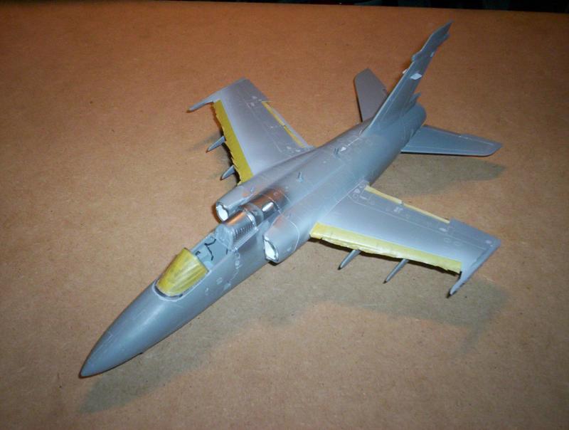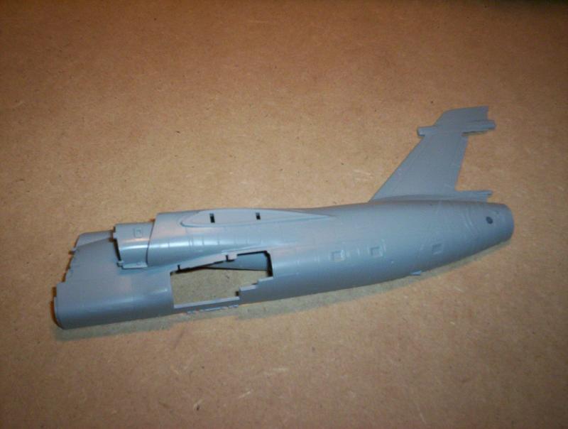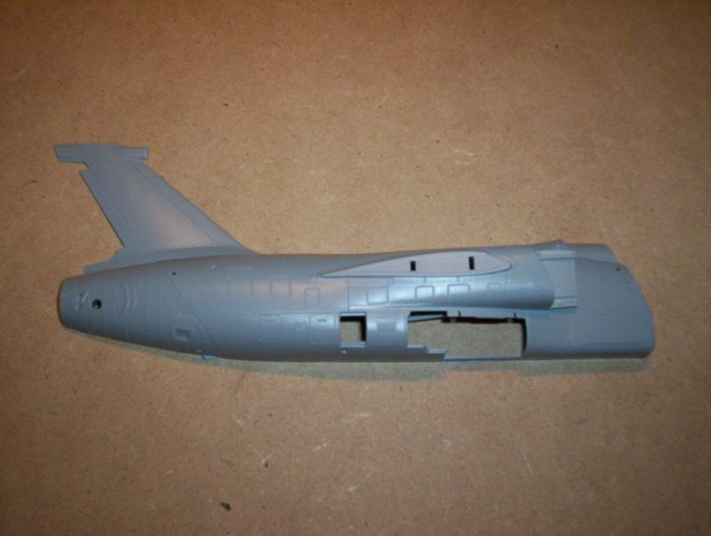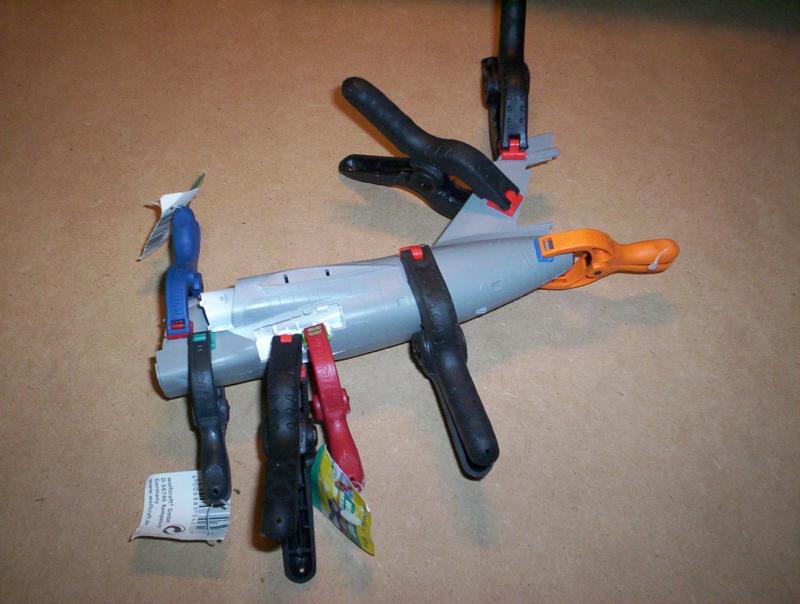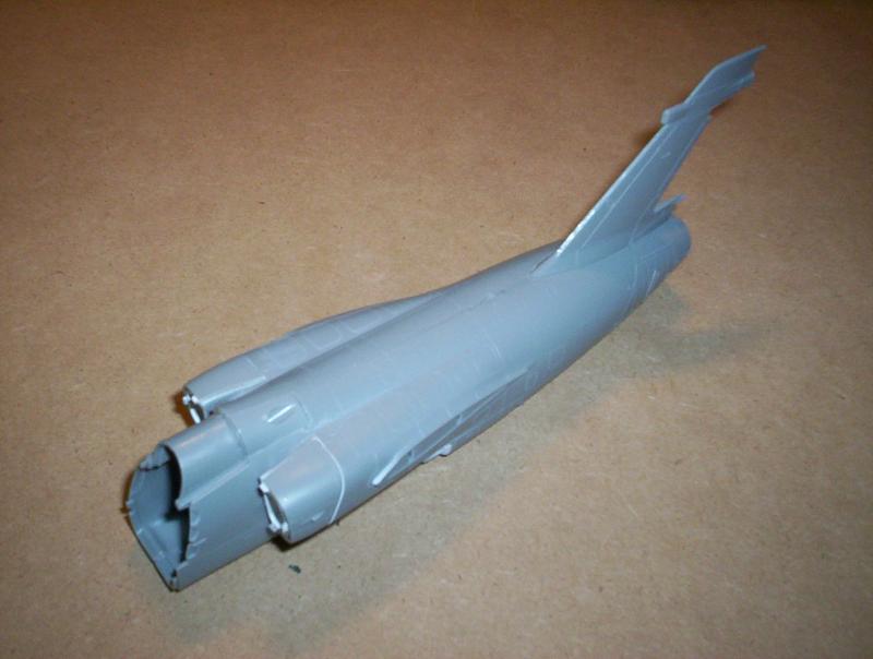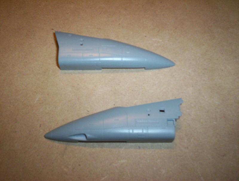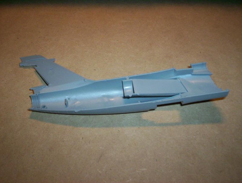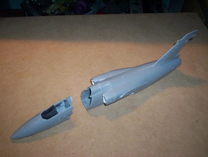 Dopo aver verniciato il pozzetto dei carrelli, le prese d'aria e il cono di scarico, ho unito le due semi fusoliere