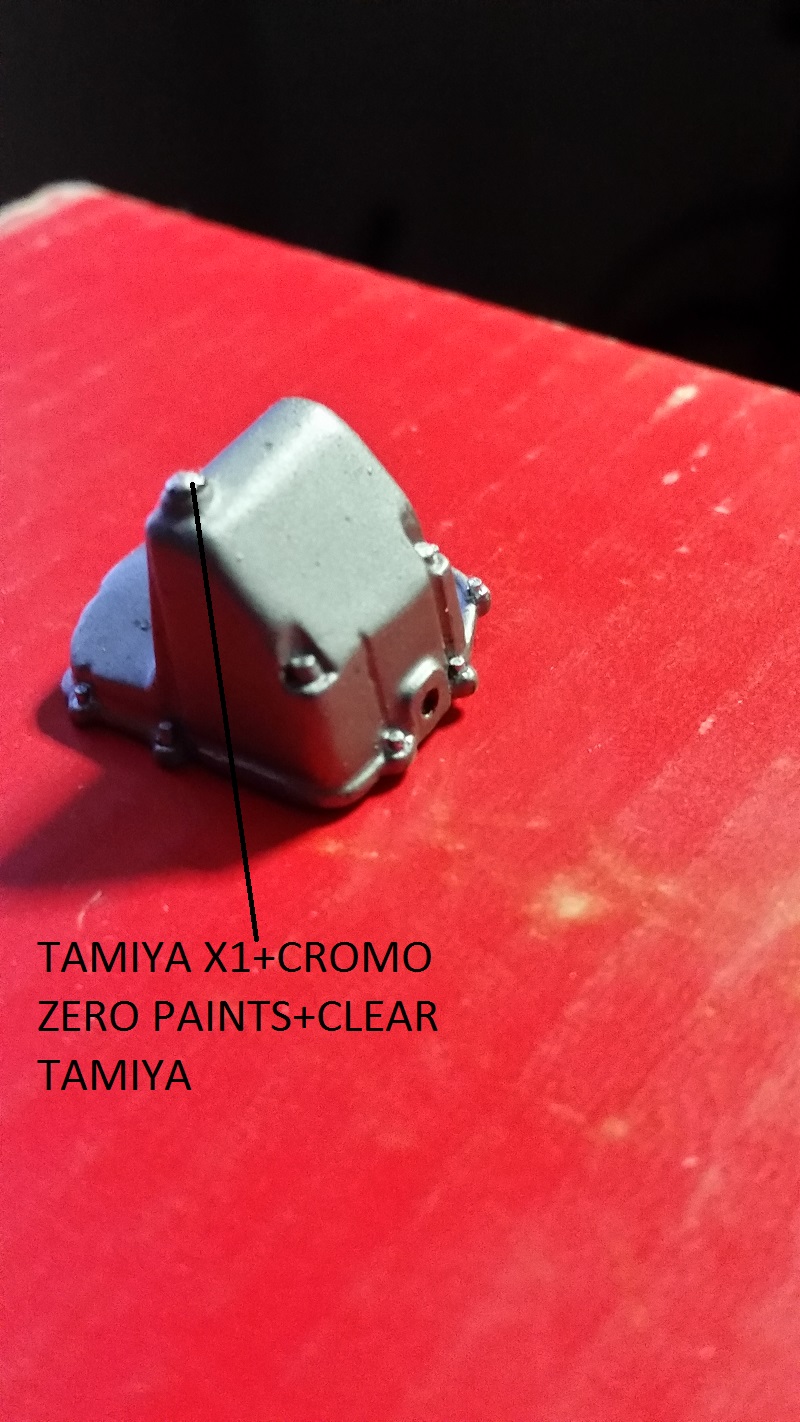 Sono andato avanti con le modifiche sul basamento.Prima di tutto ho eliminato tutti i bulloncini pre stampati dato che si erano un po persi tra grattate varie con carta abrasiva e passate di primer.Poi ho forato ognuno con una punta da 0,7 mm in un secondo momento inserirò un tondino di plasticard sempre da 0,7 mm di diametro colorato con crome AK Innteractive extreme metal.Poi ho ricreato le scanalature sui fianchi e dopo ho colorato con Ak Interactive extreme metal dark alluminium..... Infine una passata di flat clear Tamiya .......Dimenticavo ho dettagliato meglio con due pezzetti di tondino di plasticard 1,0 mm di diametro(foto N 1)..........