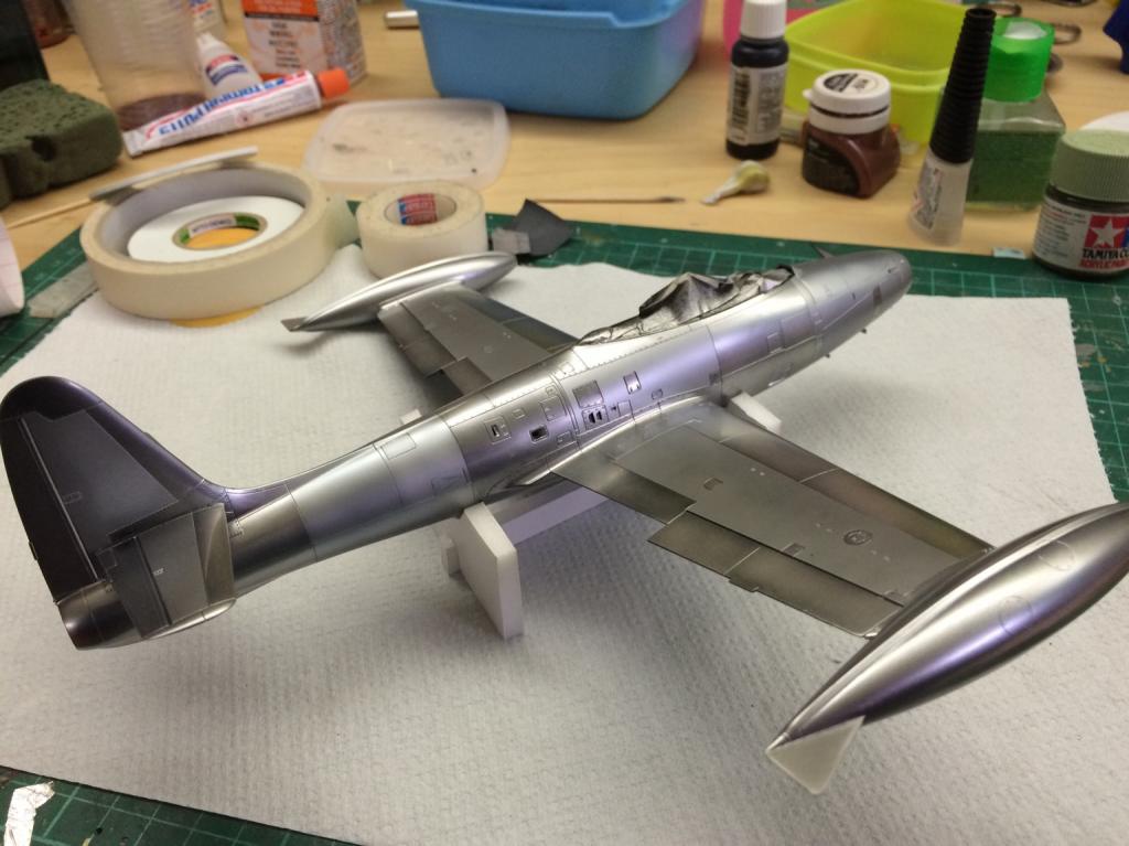 Ora nel caso specifico pensavo di applicare direttamente le decals sulla superficie ottenuta con l'aerografo ed in seguito coprire con il trasparente lucido dell'Alclad (anche se immagino smorzerà leggermente l'effetto metallico). Chiaramente il tutto tralasciando la parte tra cockpit e "muso" che è opaca.