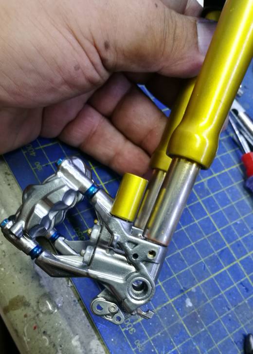 Alla fine ho rimontato la forcella completandola con le pinze freno