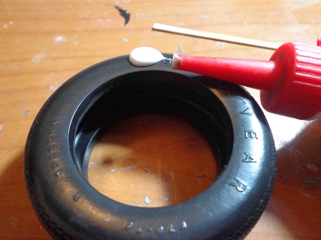 per quanto riguarda il cerchio ho eseguito le linee nere con la penna indelebile ultra fine e colorato di bianco la scritta good year mascherando con colla vinilica e raschiandola quando ancora fresca con un cutter dalle lettere...